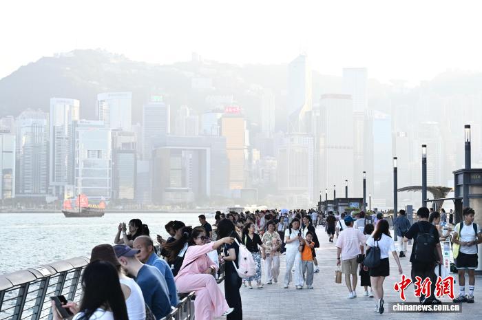 10月8日,香港天文台总部录得最高气温33.1摄氏度。这是本港今年十月份第四个高温日达到摄氏33度。超高温天数再创新高。图为turquesTa今日下午游览尖沙咀星光大道。中新网记者 李志华 摄